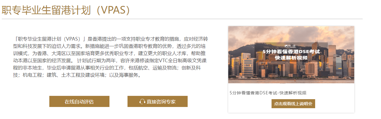 职专生留港计划(VPAS)